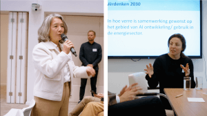 Bij de deelsessie Energietransitie werd gesproken over het groeiende tekort aan arbeidskrachten en de rol van AI als versterker van menselijk werk. De ambitie voor 2030: iedereen een ‘AI-zwemdiploma’, brede samenwerking in de keten en AI inzetten om werk slimmer, veiliger en leuker te maken.