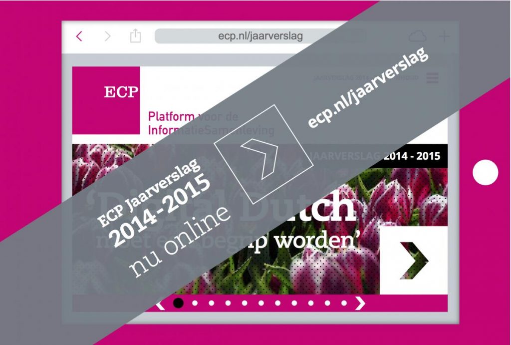 Met trots presenteren we het eerste online ECP Jaarverslag 2014-2015. Hierin vindt u onze hoogtepunten van afgelopen jaar, het overzicht aan projecten en bekijk ook de korte video’s van professionals, lees de vier trends in ICT en ECP’s visie op de toekomst. Daarin moet Digital Dutch een begrip worden. Hoe en waarom? Check het in de online uitgave van het Jaarverslag ECP 2014 – 2015.
