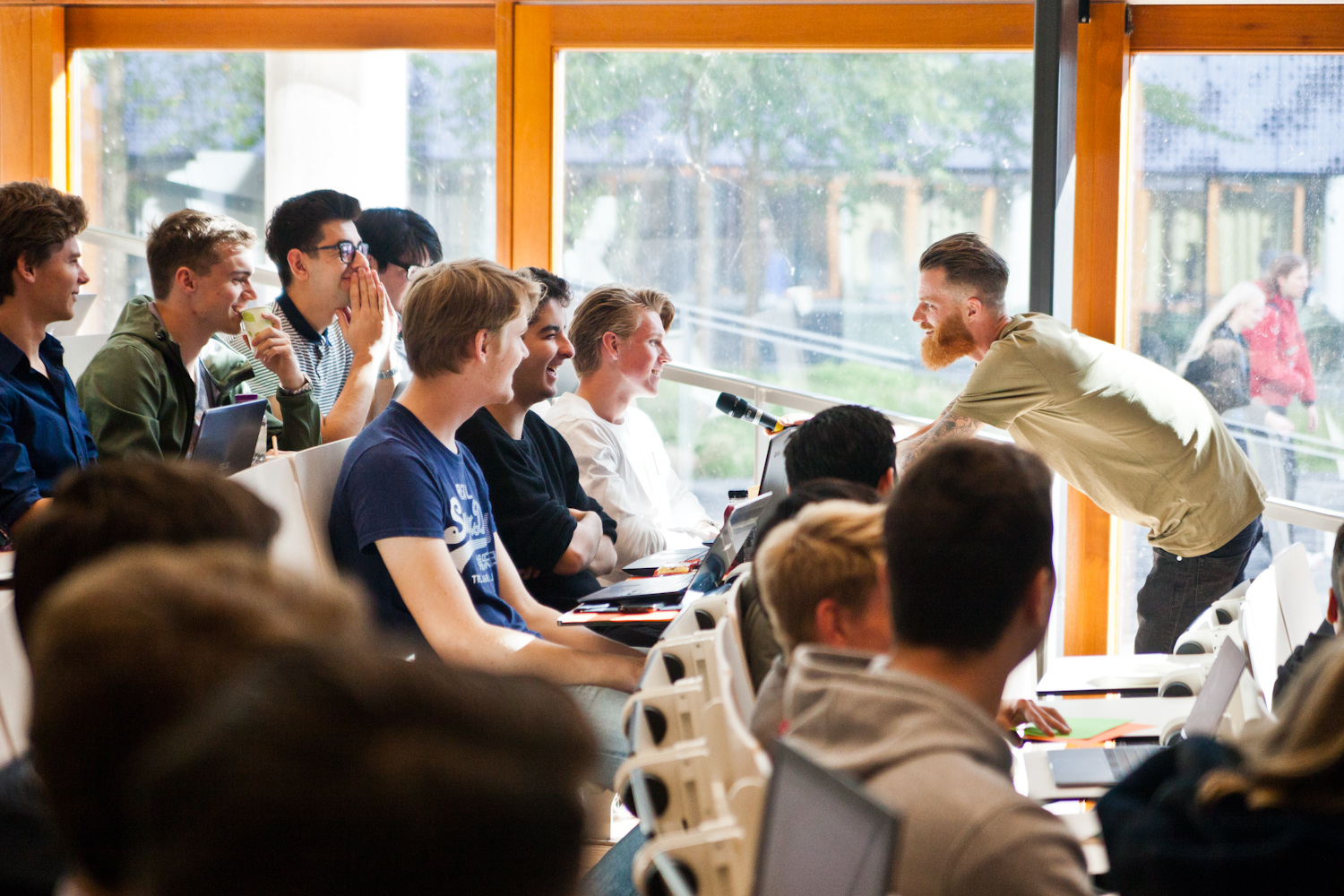 Moderator Ludo haakt hier op in en stelt de studenten voor een ethisch dilemma: stel, je vindt een lek in de security tijdens een hacksessie. Gebruik je het om er zelf beter van te worden of meld je het zodat andere gebruikers niet bedrogen worden? Het is een lastig dilemma voor de zaal. Een student denkt de oplossing te hebben: melden dat je een lek gevonden hebt maar de eigenaar moet eerst betalen om die informatie te krijgen.
