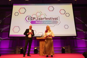 Het plenaire programma stond onder leiding van Arie van Bellen (Algemeen directeur – ECP) en Marjolijn Bonthuis (Programmadirecteur Digitale Veiligheid & Vertrouwen – ECP). Zij spraken op het plenaire podium Michiel Boots (Directeur-generaal Economie en Digitalisering – Ministerie van Economische Zaken) onder andere over de digitale infrastructuur, AI-adoptie, economische weerbaarheid, investeringen en publiek-private samenwerking. Ook werden de highlights en publicaties van de diverse projecten en coalities van ECP | Platform voor de InformatieSamenleving gepresenteerd aan de gasten. Eva Heijblom (Directeur-generaal Digitalisering en Overheidsorganisatie – Ministerie van Binnenlandse Zaken en Koninkrijksrelaties) en Jacqueline Rutjens (Waarnemend Directeur Open Overheid – Ministerie van Binnenlandse Zaken en Koninkrijksrelaties) gaven een inkijkje in de Hackathons Open Overheid en de werkplek van de toekomst. Vervolgens ging Eva Heijblom met de dagvoorzitters in gesprek over onder andere de Nederlandse Digitaliseringsstrategie (NDS) en het programma Digitaal Doordacht. De Speld verzorgde een korte liveshow waarin de actualiteit met scherpe humor en een flinke knipoog werd belicht.