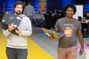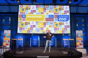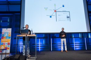 Op weg naar de pitches vertelde Marc Minnee over de laatste loodjes voor de teams, over het doorhalen in de nacht, het waarom van de hackathon en kondigde hij de volgende hackathon aan.