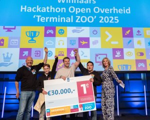 Een deskundige jury koos drie winnaars uit de tien teams. Alle prijzen zijn inclusief begeleiding en de implementatie van de oplossing bij een overheidsorganisatie.